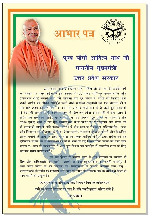 हर जनपद में 100 एकड़ में बनेगा सरदार पटेल रोजगार पार्क